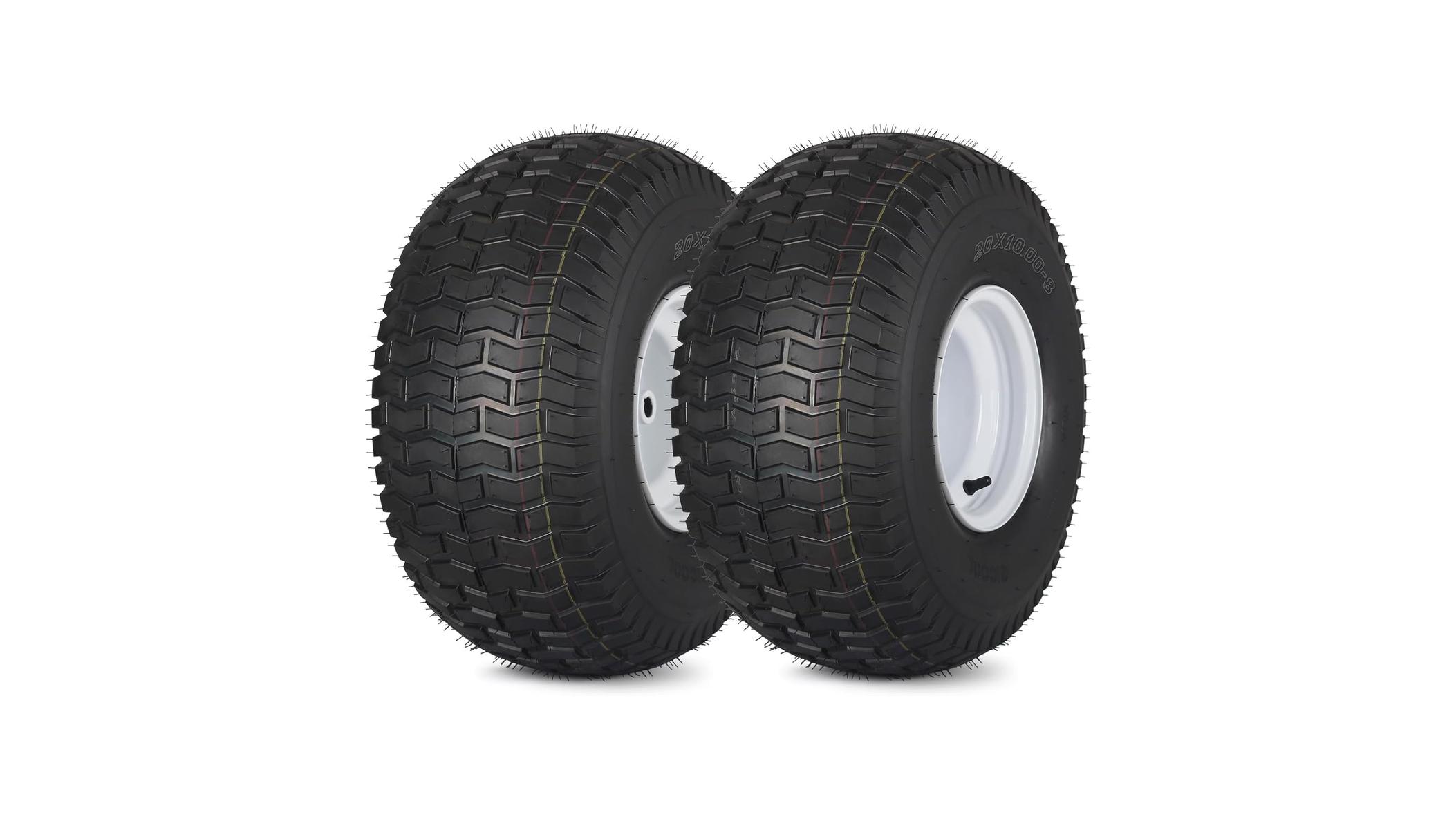 - Revitalize your ride-on mower with the robust 20×10.00-8 Lawn Mower Tire and Wheel, 4 Ply Tubeless Tire, Replacement 20×10-8nhs Riding Lawn Mower and Tractor Rear Tire and Wheel Assemblies, 3.5″ Offset Hub, 3/4″ Borehole, and 3/16″ Keyway. Designed for durability and performance, this tire and wheel assembly is engineered to handle tough terrains and demanding tasks, ensuring your lawn care equipment remains operational and efficient season after season. This comprehensive unit is ready to provide a reliable upgrade for your heavy-duty garden machinery.
