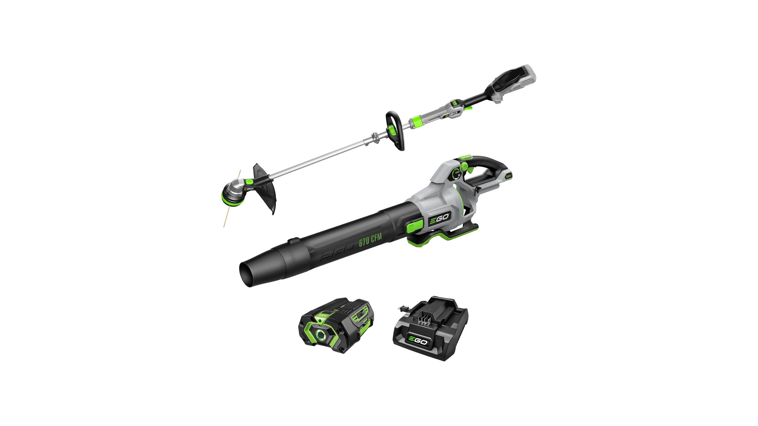 - Tired of wrestling with extension cords and struggling with outdated yard tools? The EGO POWER+ Combo, Cordless Trimmer and Blower, 15″ Trimmer for Weeds and Grass with POWERLOAD and Cordless Electric 670 CFM Blower, Includes 56V 4.0Ah Battery and Charger – ST6703LB offers a powerful, convenient, and efficient solution for all your lawn care needs. This comprehensive kit brings together advanced cordless technology and robust performance, making yard work feel less like a chore and more like a breeze.