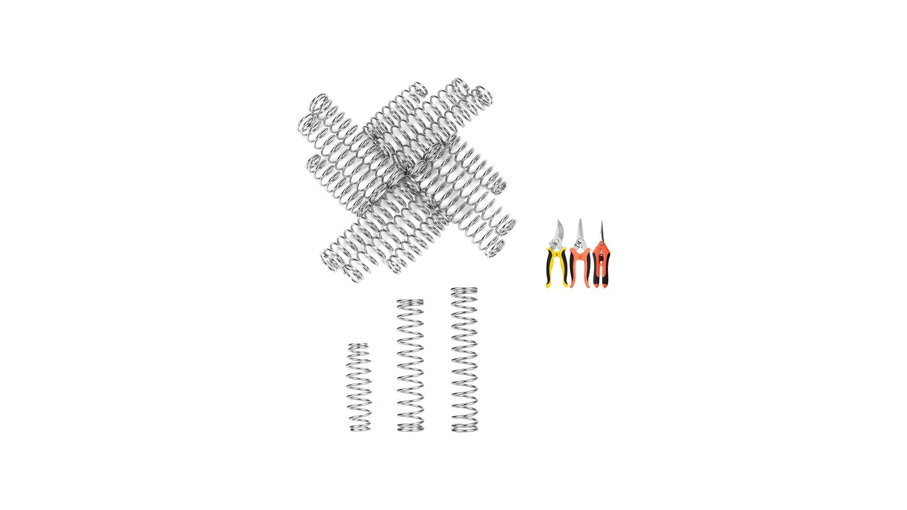 - Universal Compatibility: These springs are specifically designed to be suitable for the multicolour 3-Pack Garden Pruning Shears Set available on Amazon. A visual guide is provided in the second product photo to help you confirm if these springs will fit your existing pruners, ensuring a precise match.