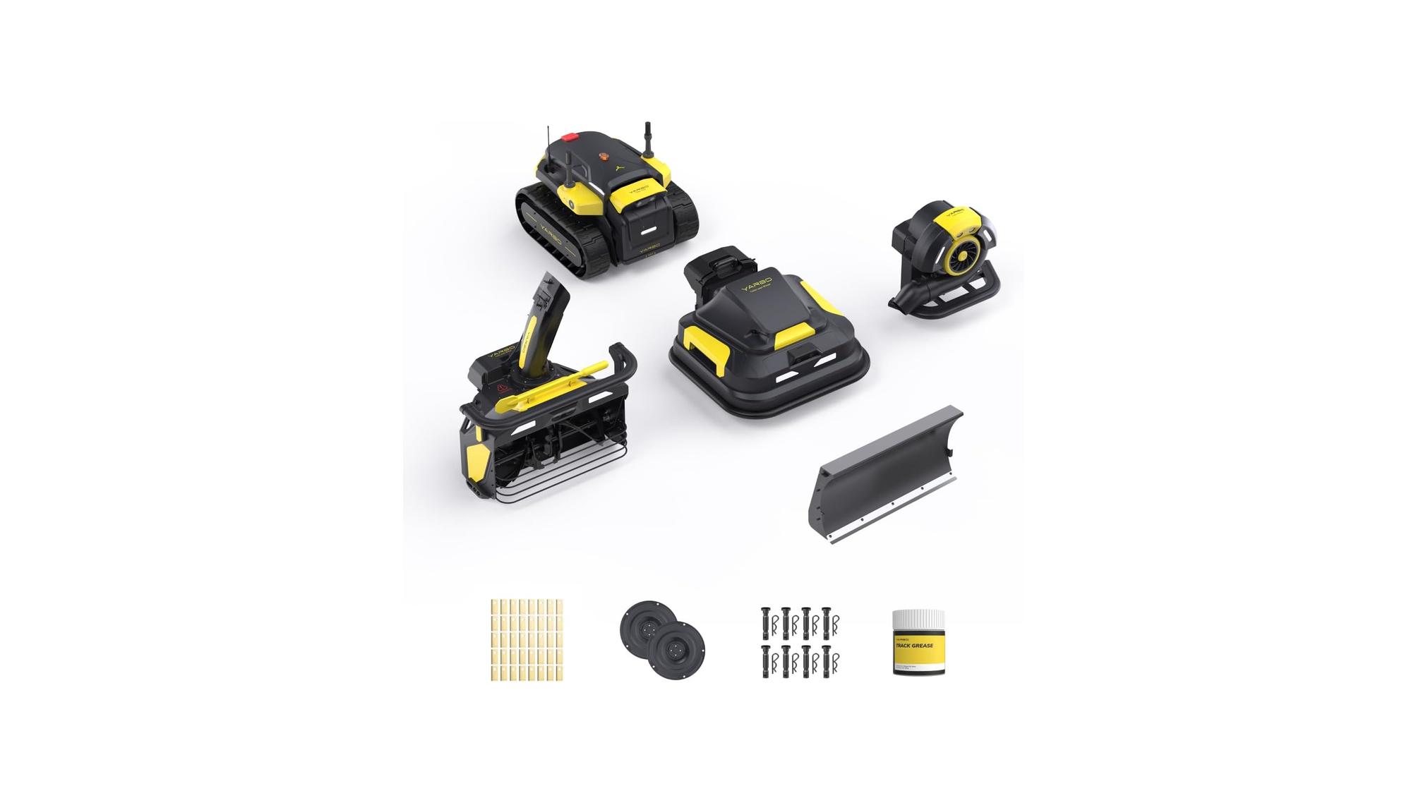 • YARBO 4-in-1 Modular Robot, Snow Blower,Lawn Mower and Leaf Blower with Plow Blade, Cutting-Blades <em>2, Cutting Disc </em>2, Shear Pins & Cotter Pins (8 Sets), Track Grease” style=”max-width: 300px; height: auto; margin-bottom: 15px; border-radius: 8px; display: block; margin: 0 auto;”></p>
